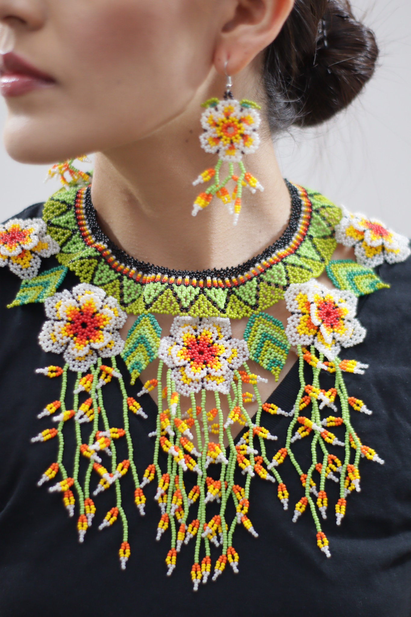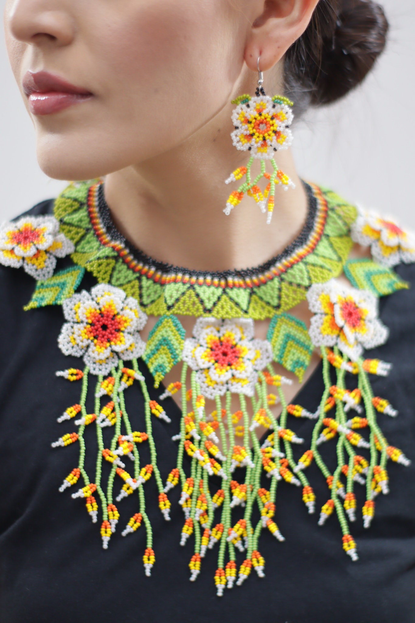 This 2 piece set features a matching earrings and necklace set and a white flowering vine theme. Wear this over a sweater, dress, or over skin with a low cut top...beautiful! The fit is high, decorating the collar bones and upper chest area.
