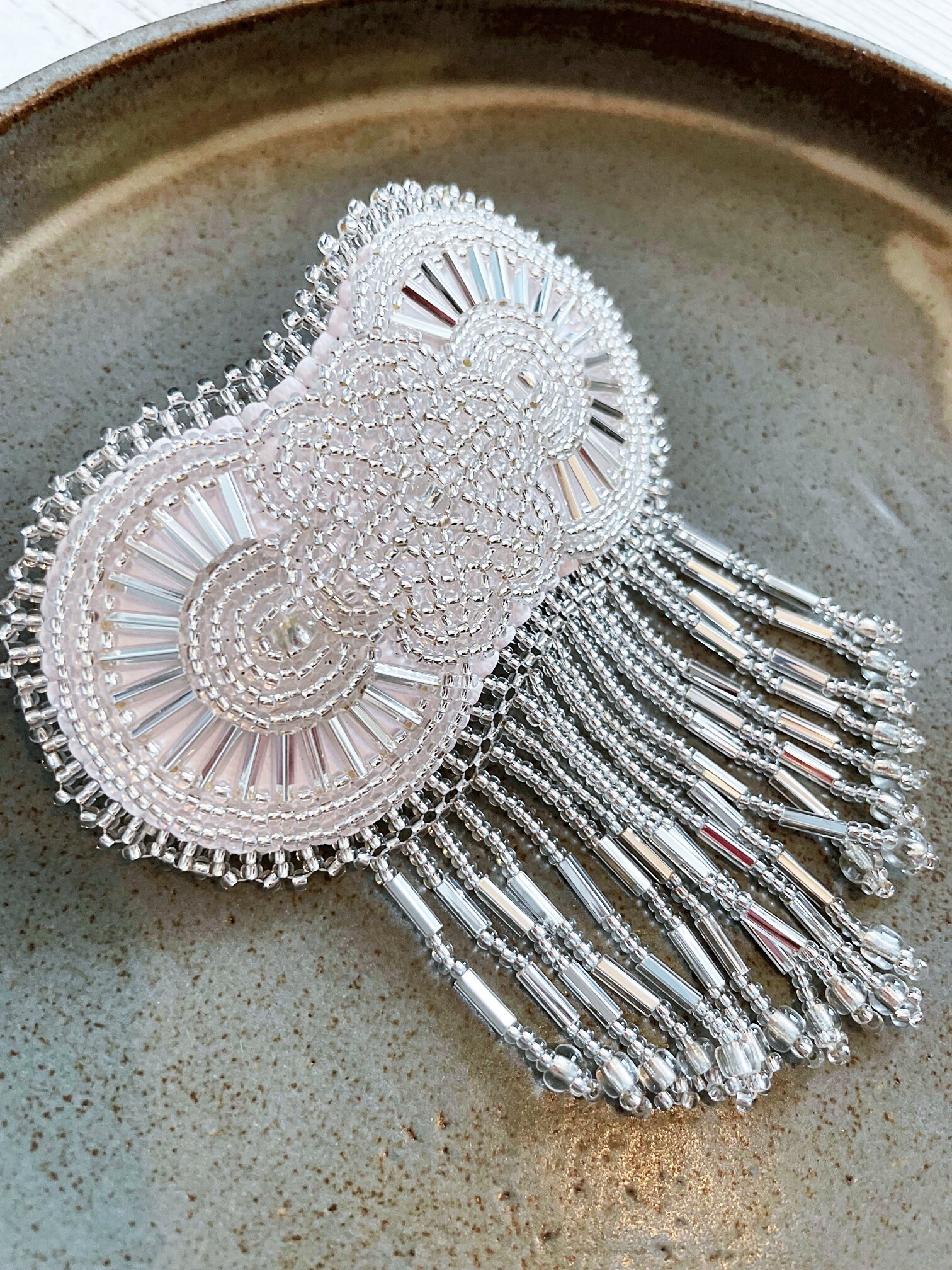 Beaded Boho Barrette, Native American Jewelry, Boho Hair Clip, Indigenous Made, Silver, Handmade, Etsy Jewelry | Biulu Artisan Boutique