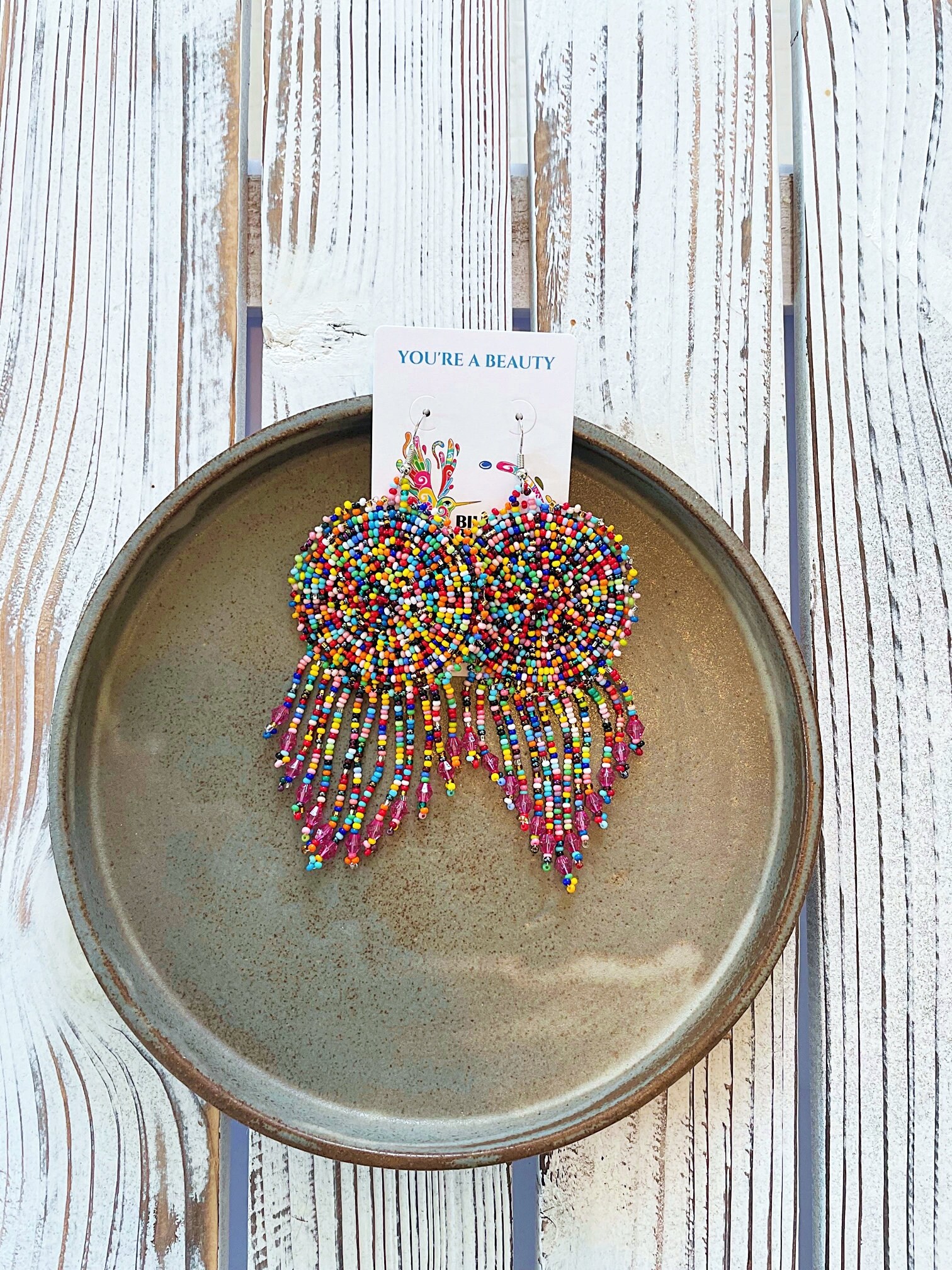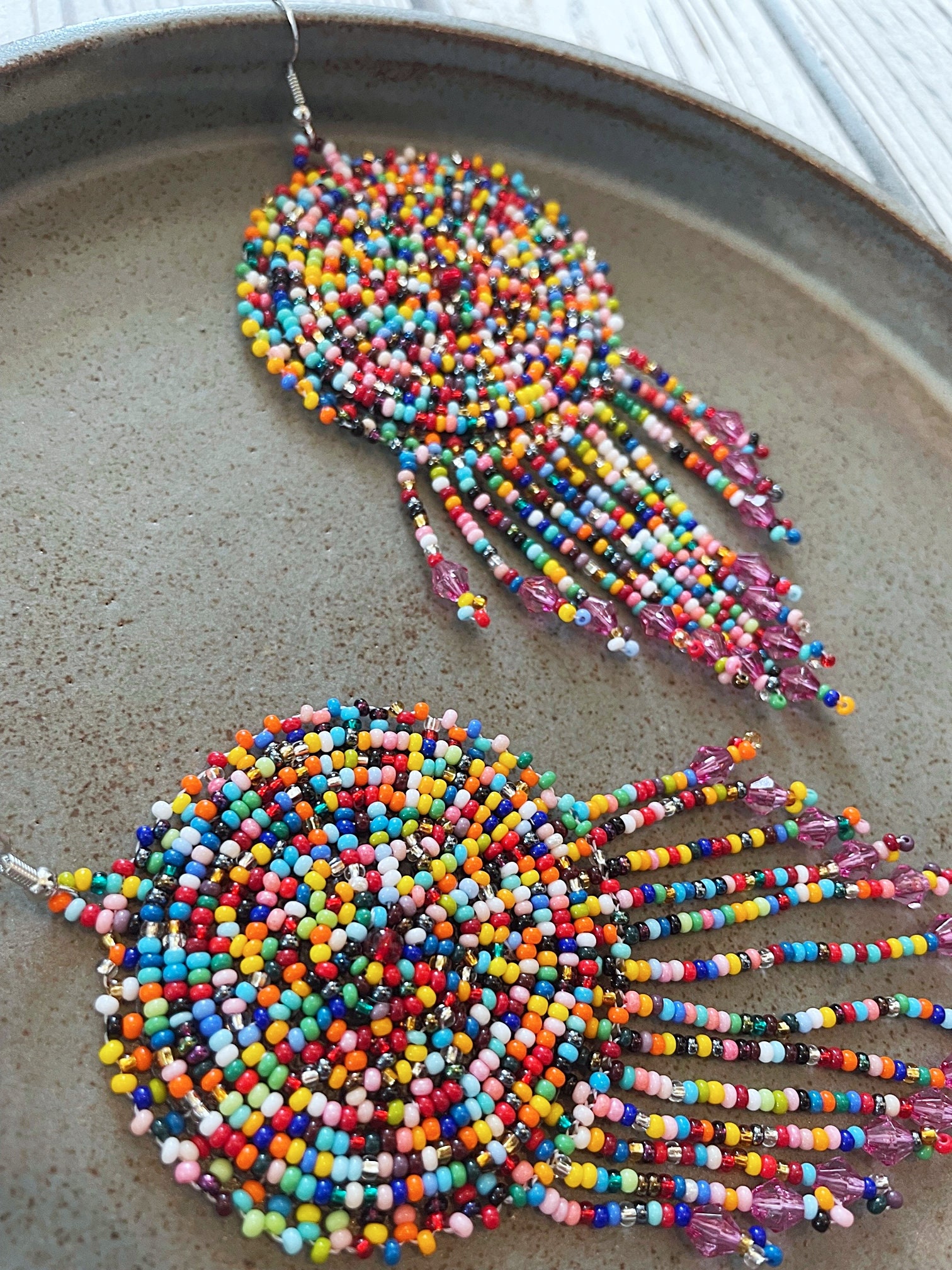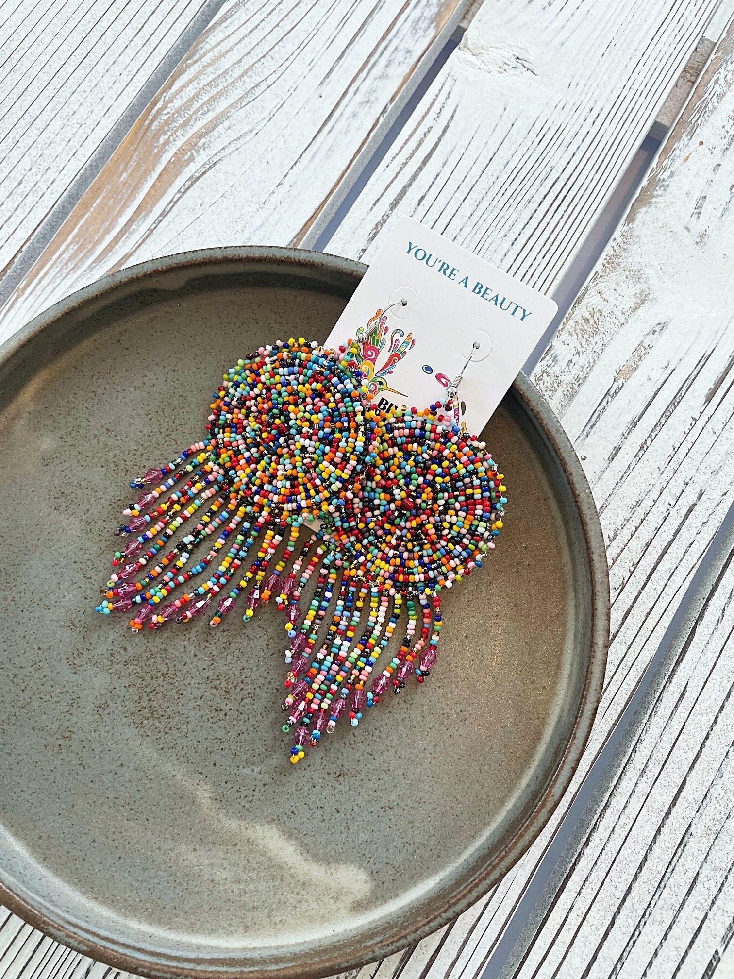 - The bead work is stitched on to a quality faux-leather backing which provides structure and body.