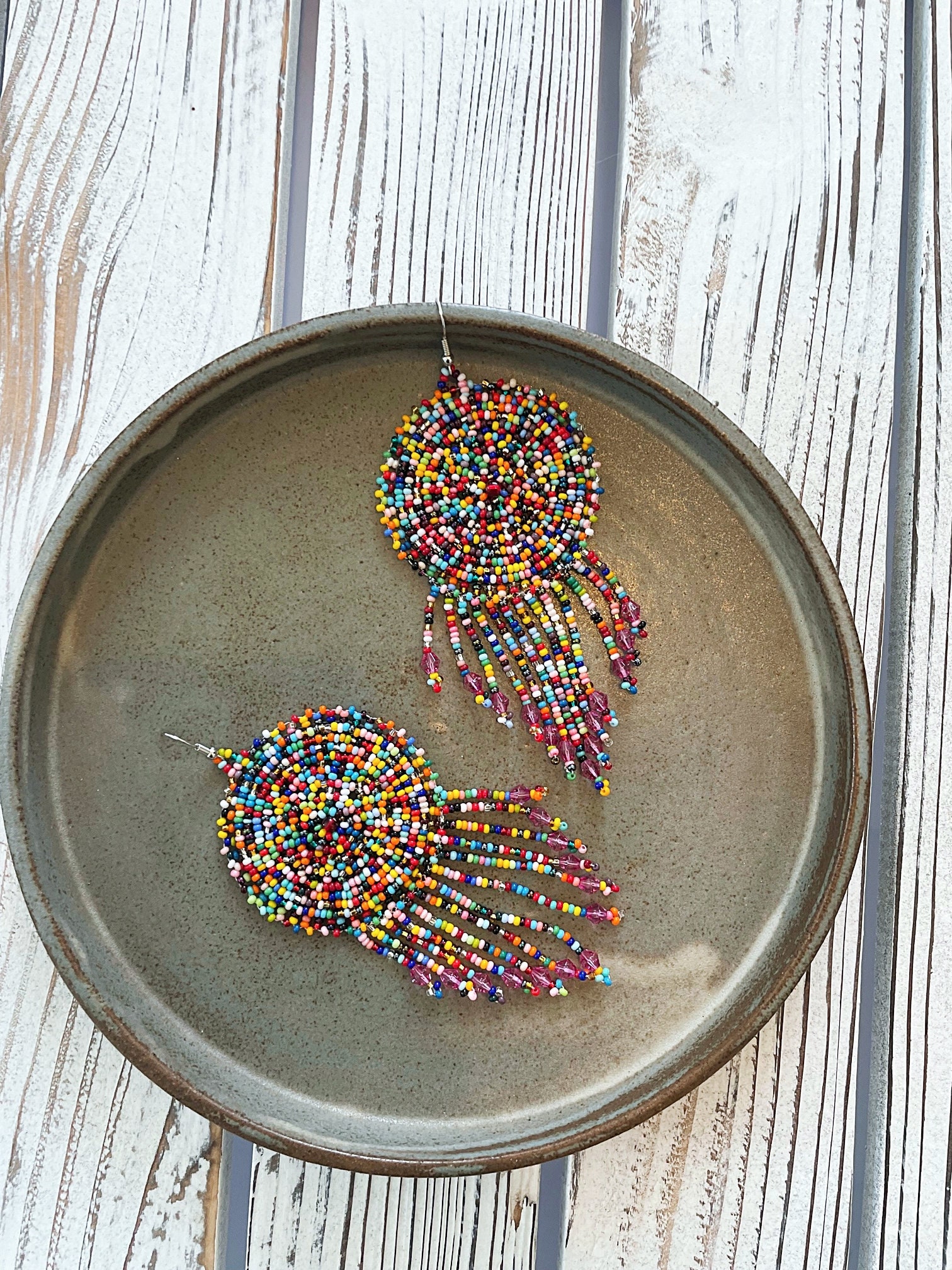 - These faux leather-backed medallion earrings feature a bright color mix which splashes color from your lobes to your neck. They're abstract without a specific design/patter so they just seem to go great with everything! Please note that the colors are selected at random and no earrings will be the same. If you are partial to specific blend, please note this at the time of order.