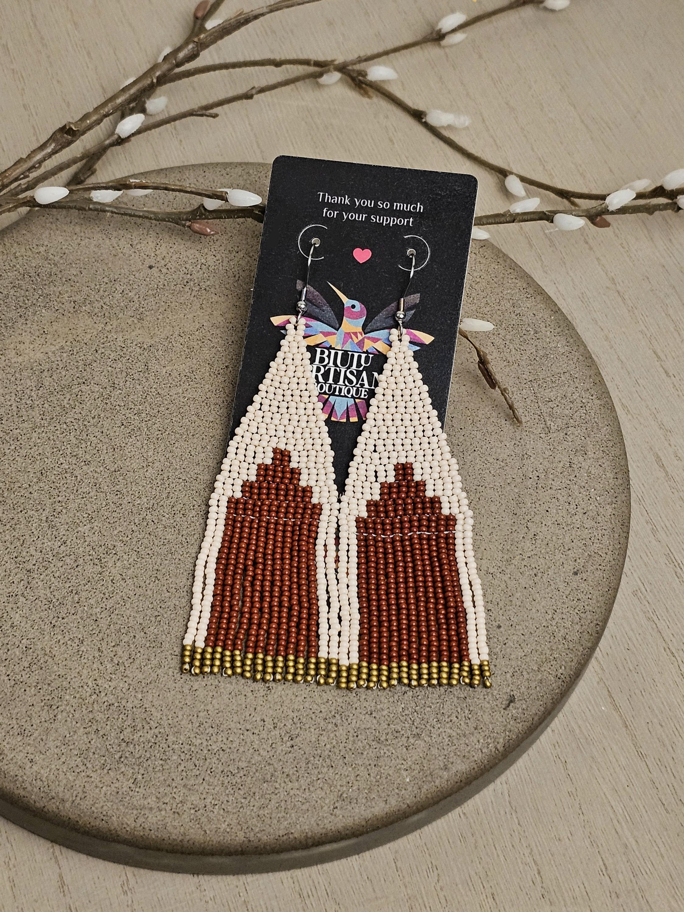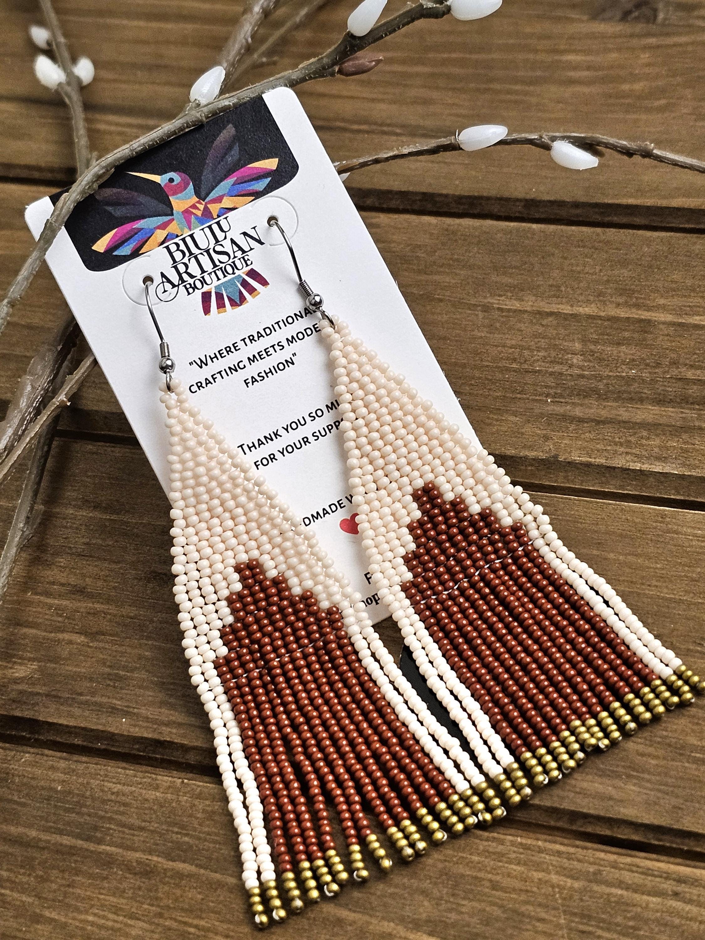A  bone color border, brown center and a beautifully touch of matte gold make up these cute statement earrings. The earrings feature a good balance between size and presence, featuring a minimalist design by Biulu Team.