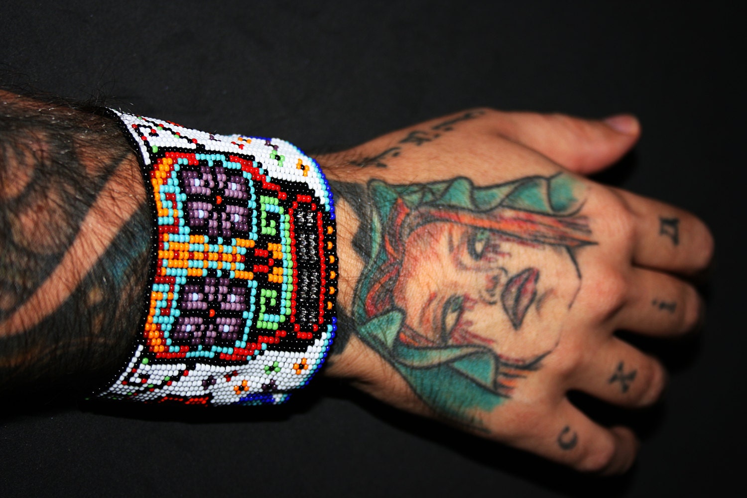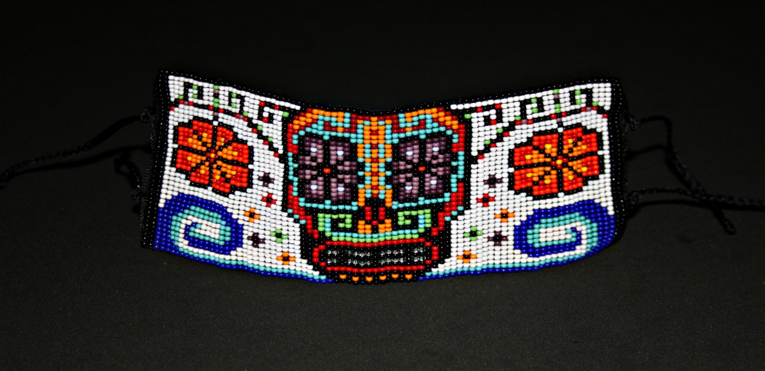 - This is a wide beaded cuff bracelet fusing Huichol art and Mexican traditional art together.