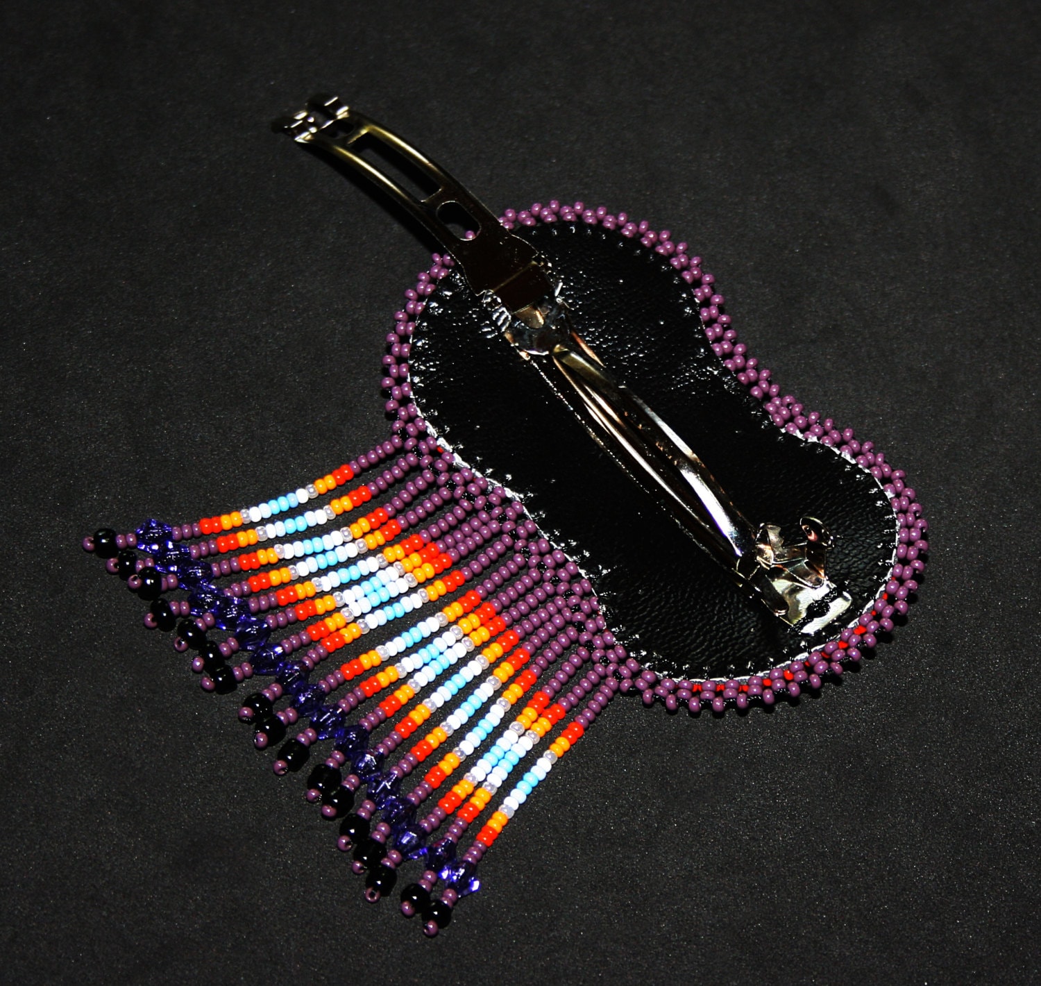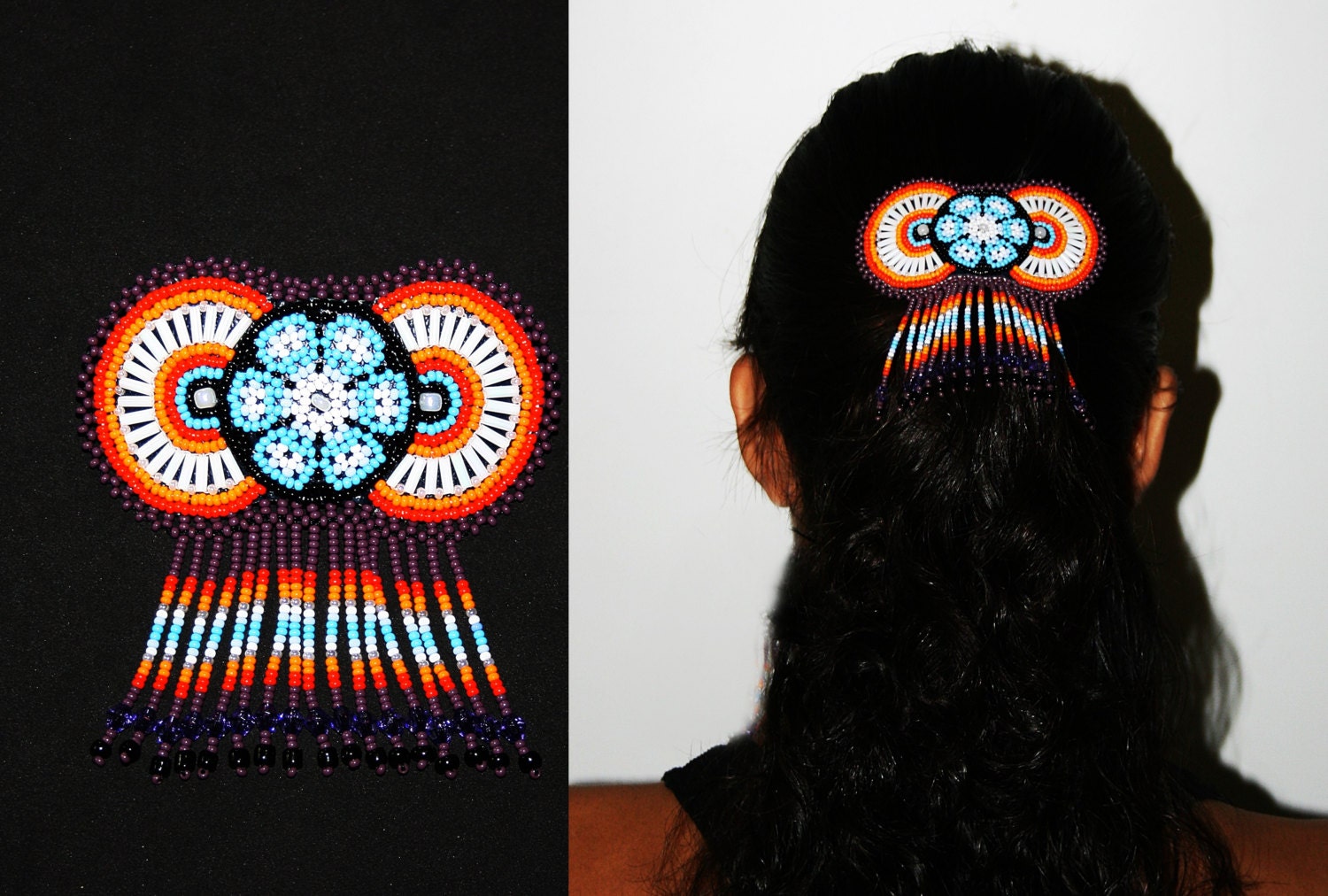 - A gorgeous and exotic traditionally beaded Huichol hair barrette.