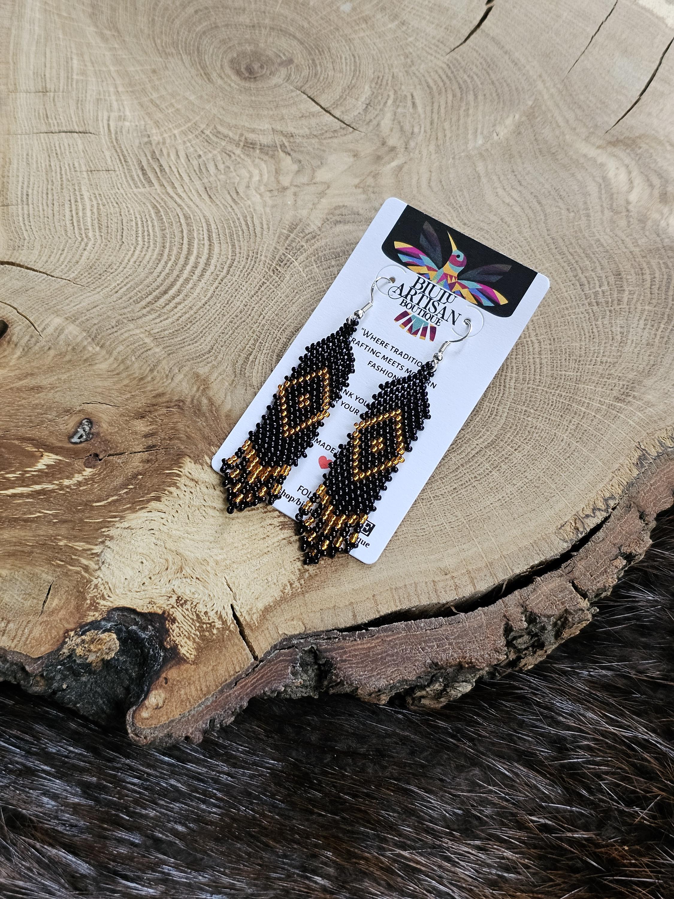 The earrings feature a combination of Black & shiny Gold beads, making them a perfect pair of elegant light earrings.