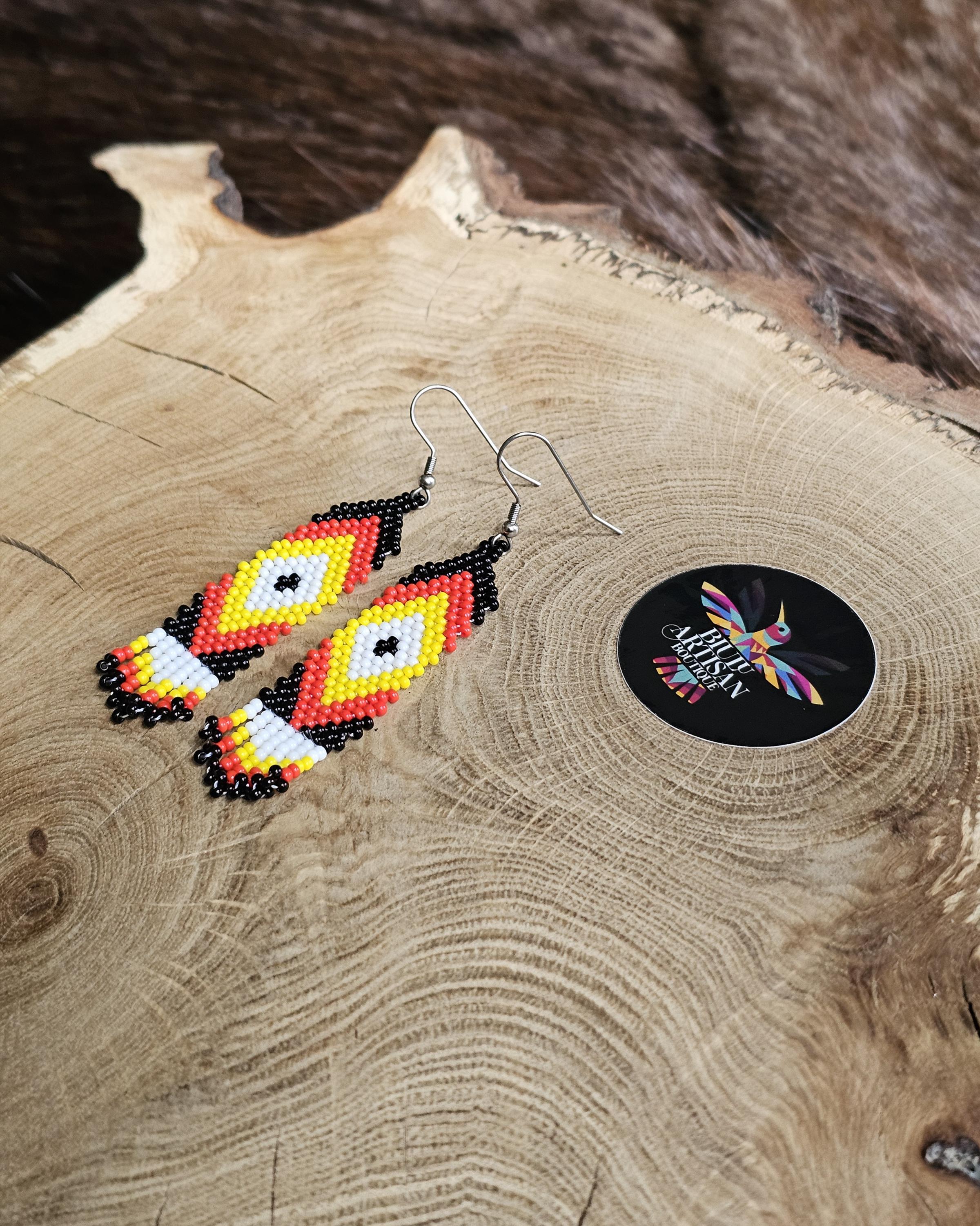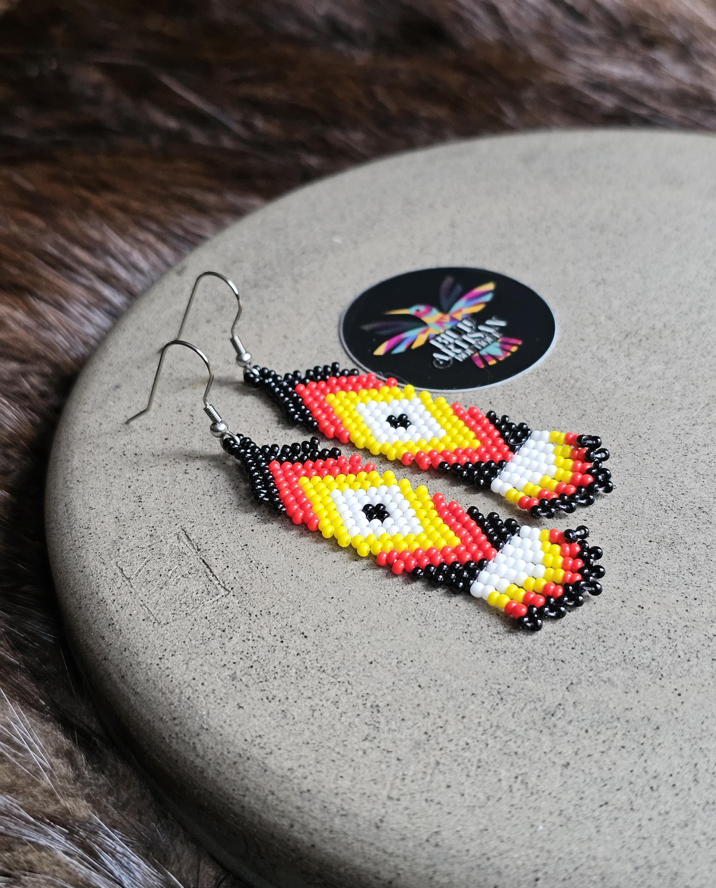 The earrings feature the medicine wheel colors.