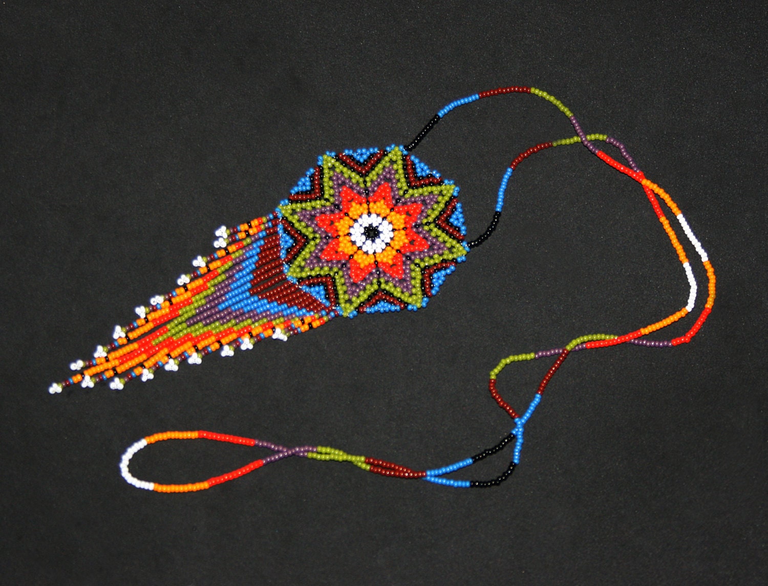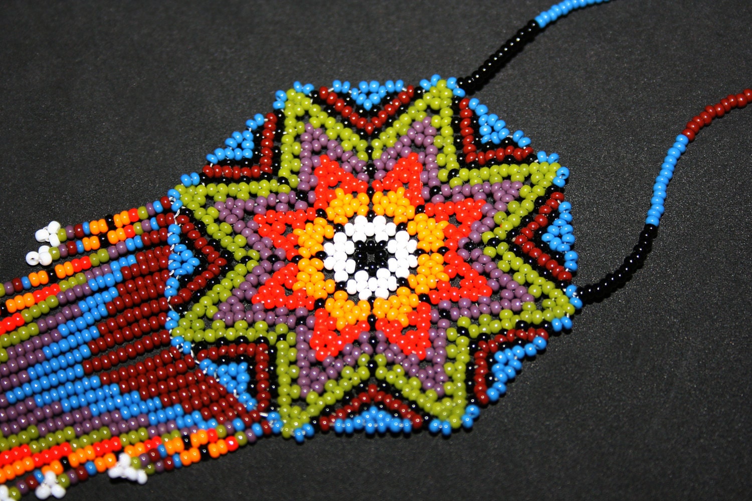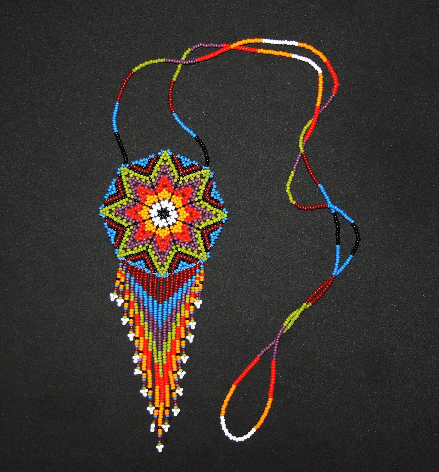 - A beautiful traditionally beaded Southwestern Native American/Huichol medallion necklace.
