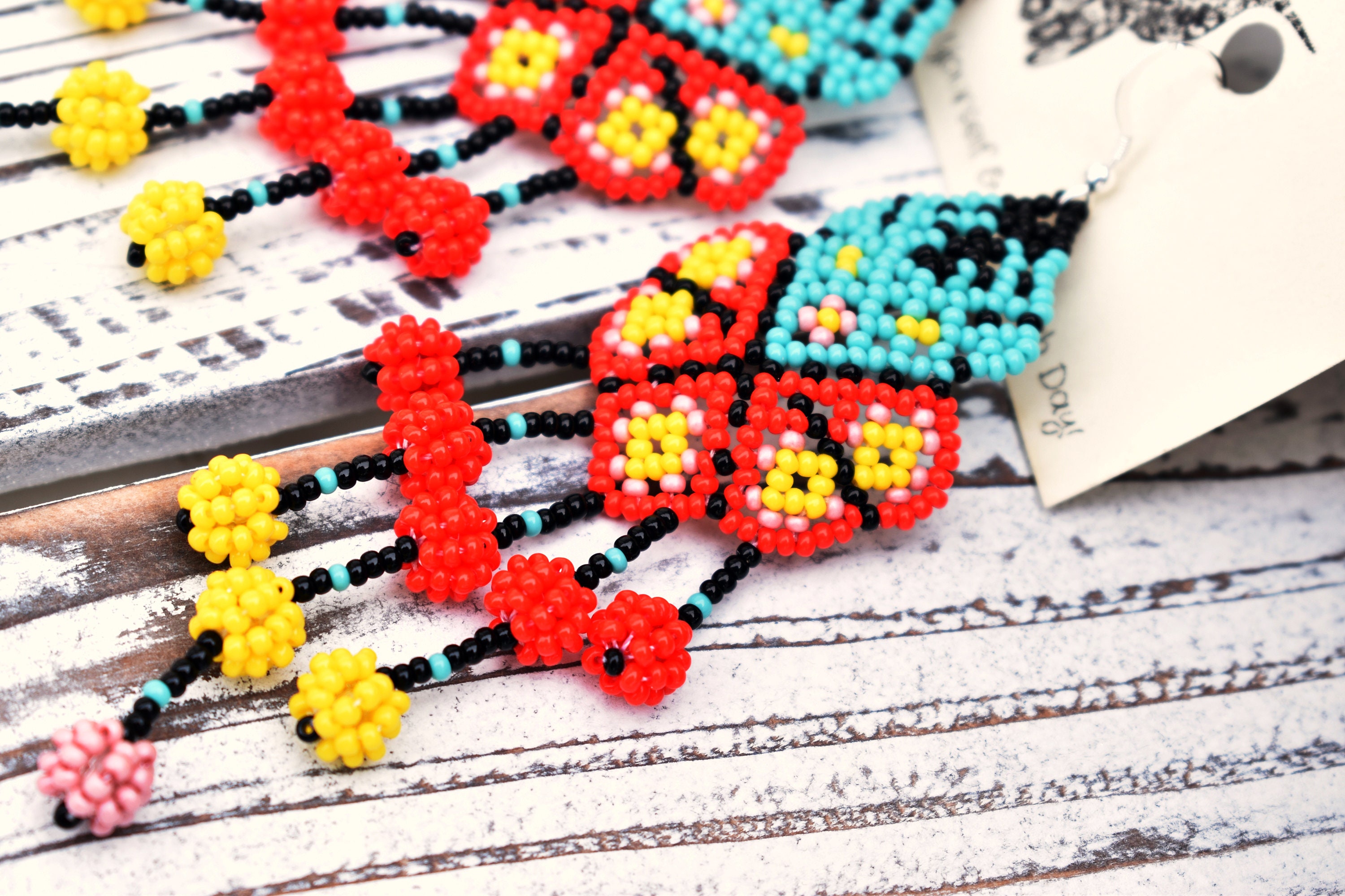 Made using a traditional freehand beading technique with strong synthetic thread.