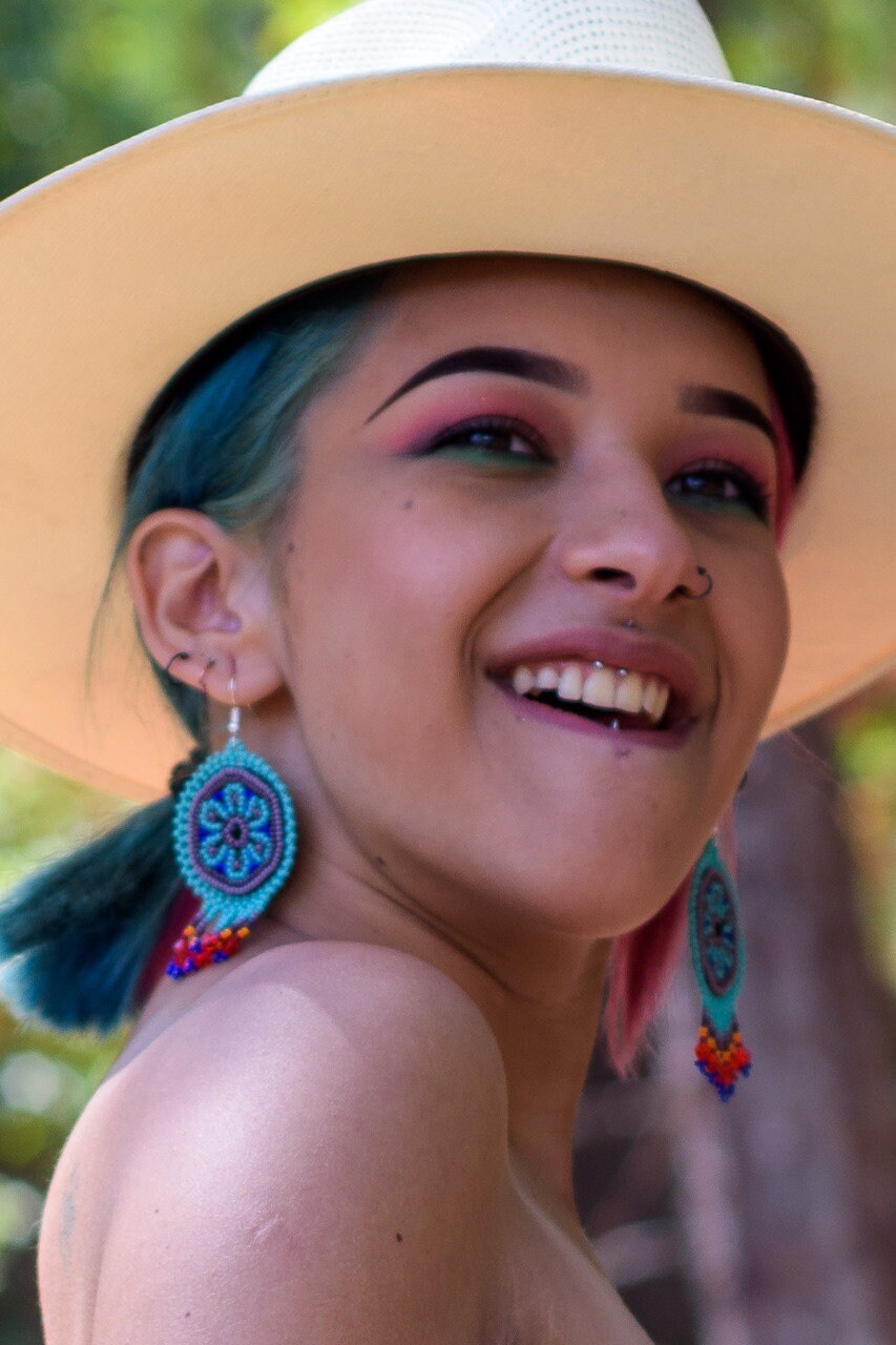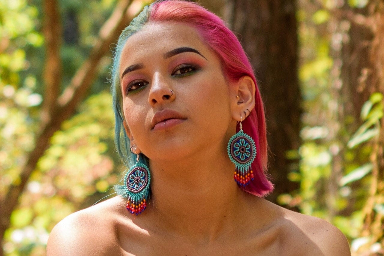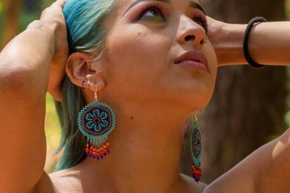 - These native-boho fusion medallion earrings feature a compact size with bright colors and plenty of personality.