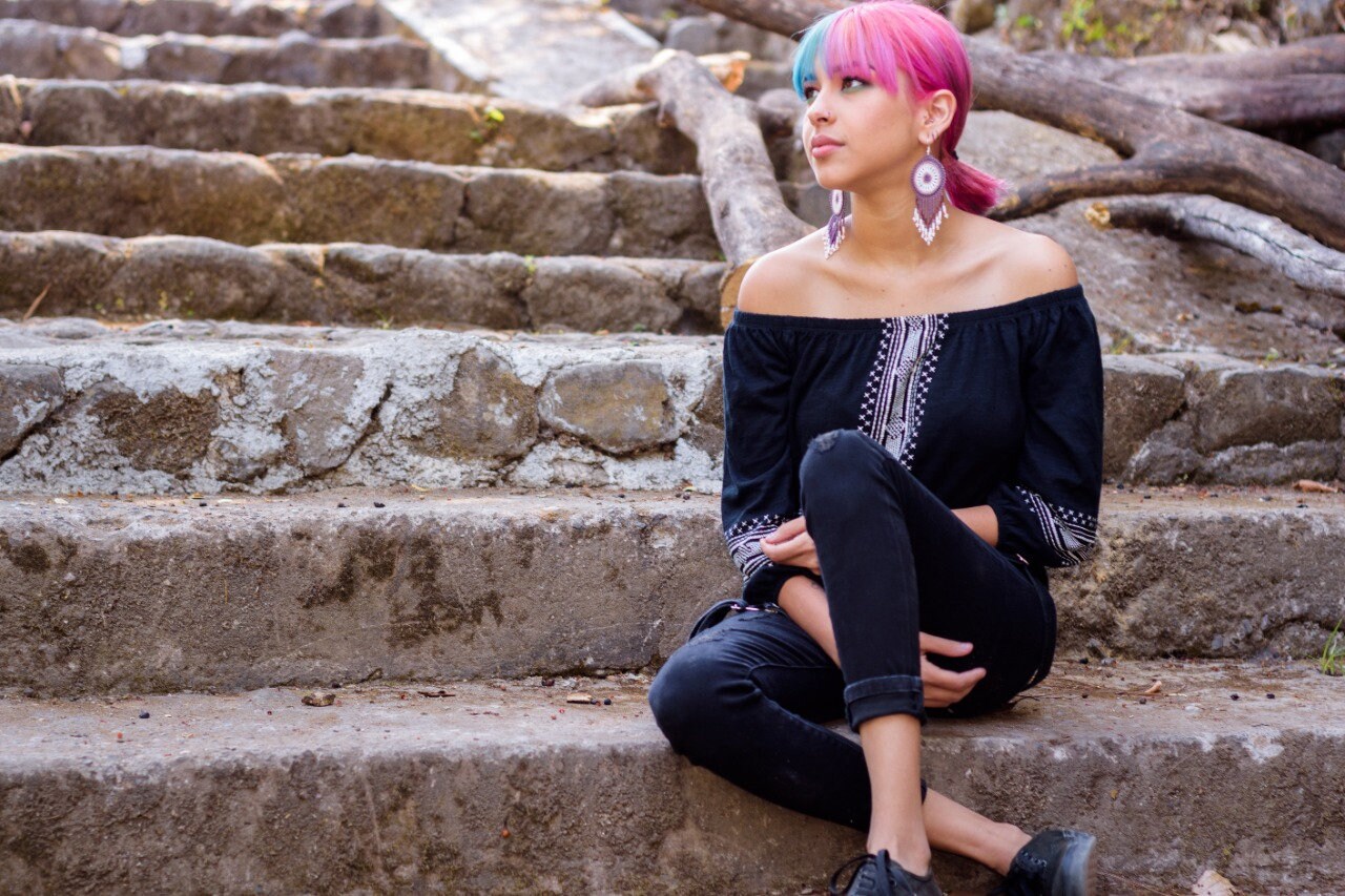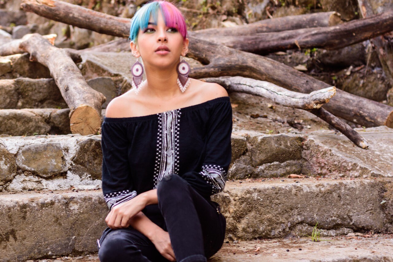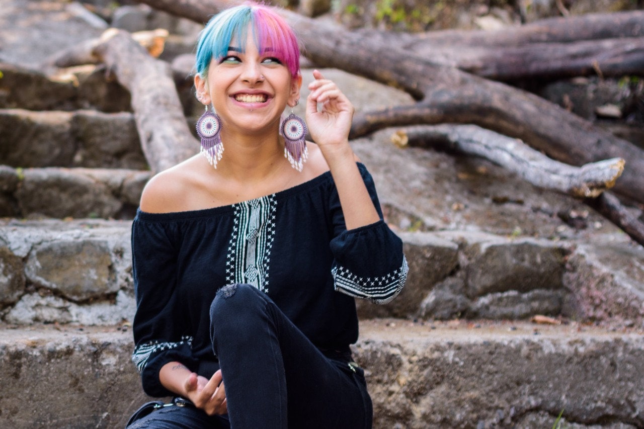- These boho earrings express an earthy femininity with a purple base and white accents. More mellow than a blue blend...an exotic tranquility.
