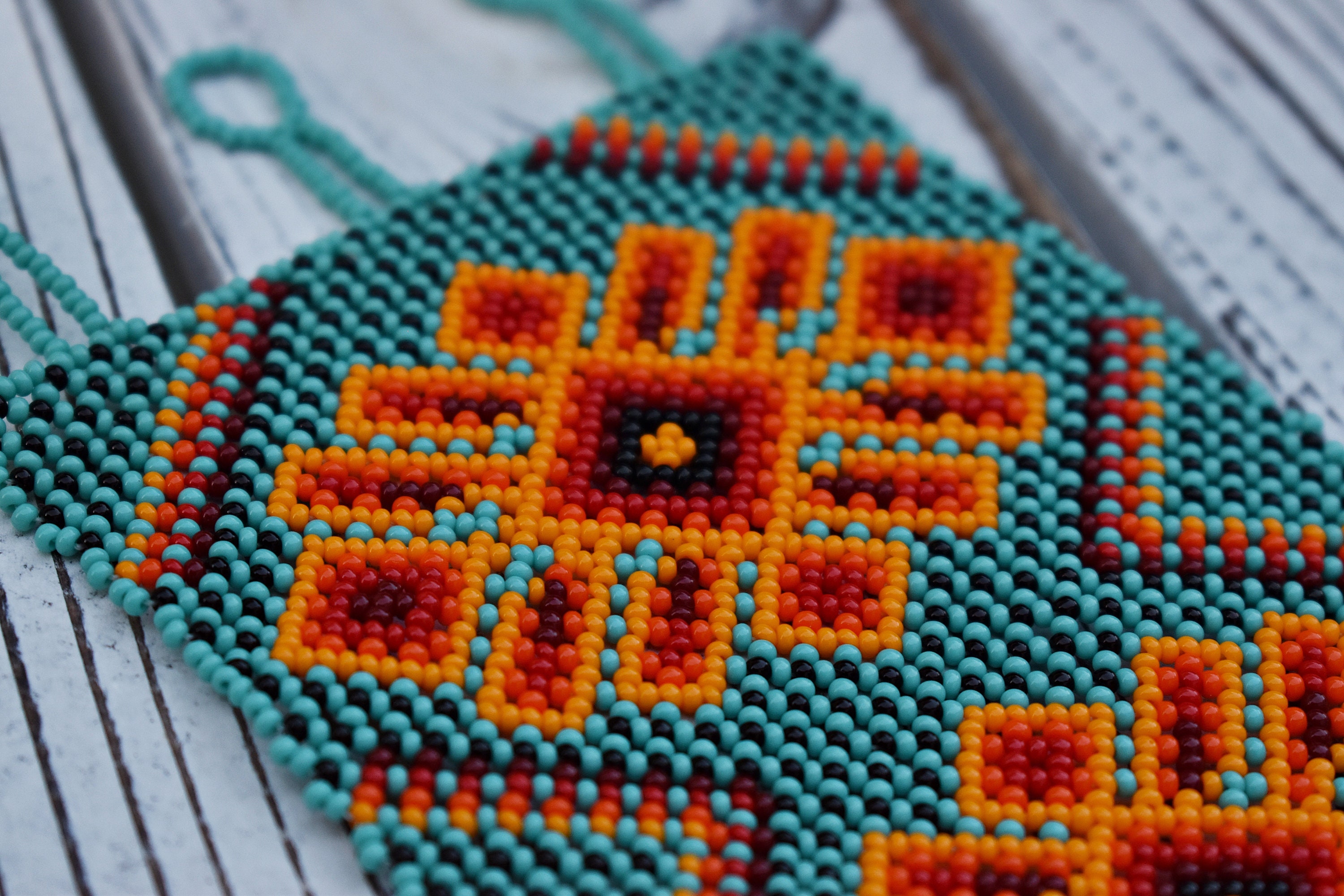 Made using a traditional freehand beading technique with strong synthetic thread.