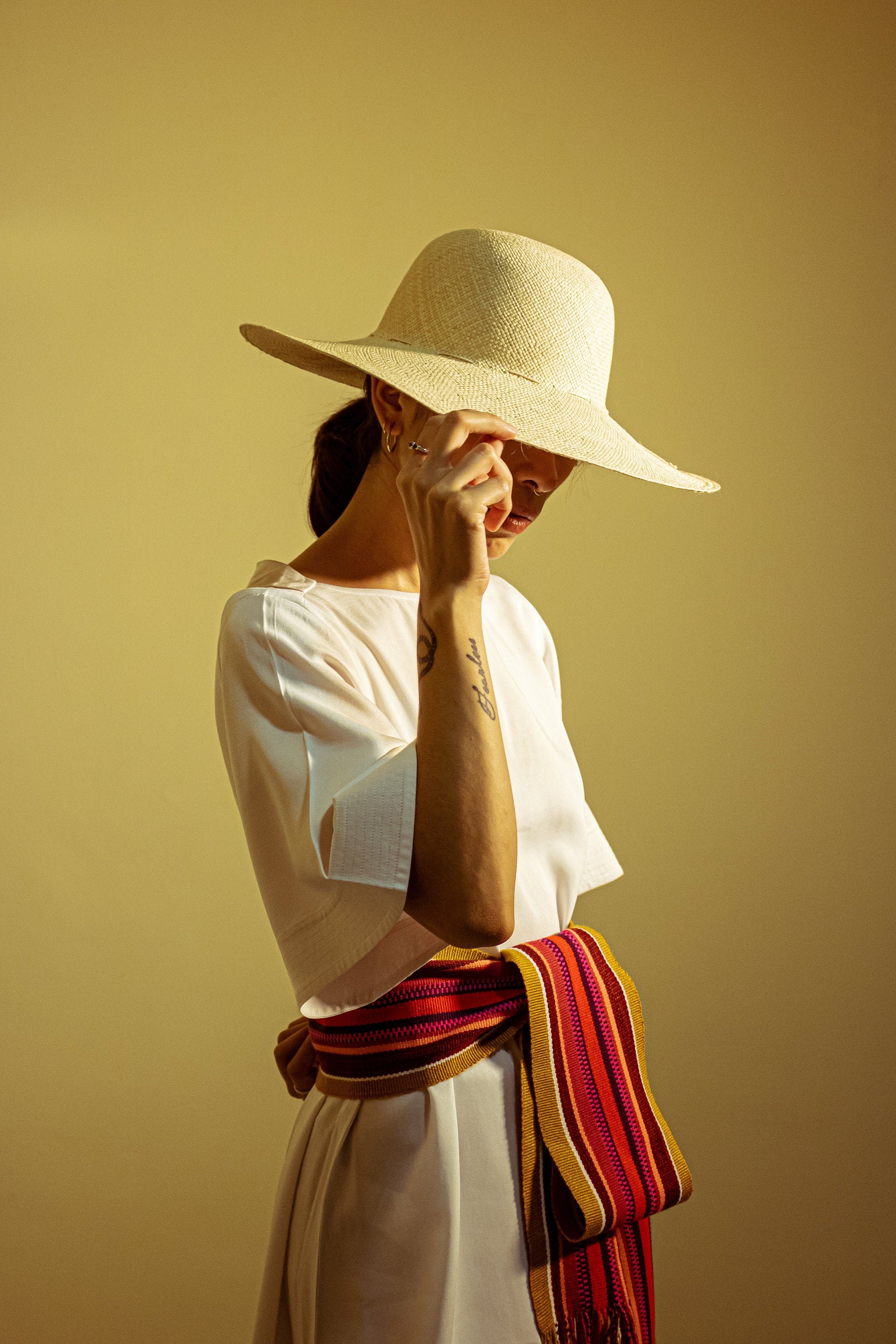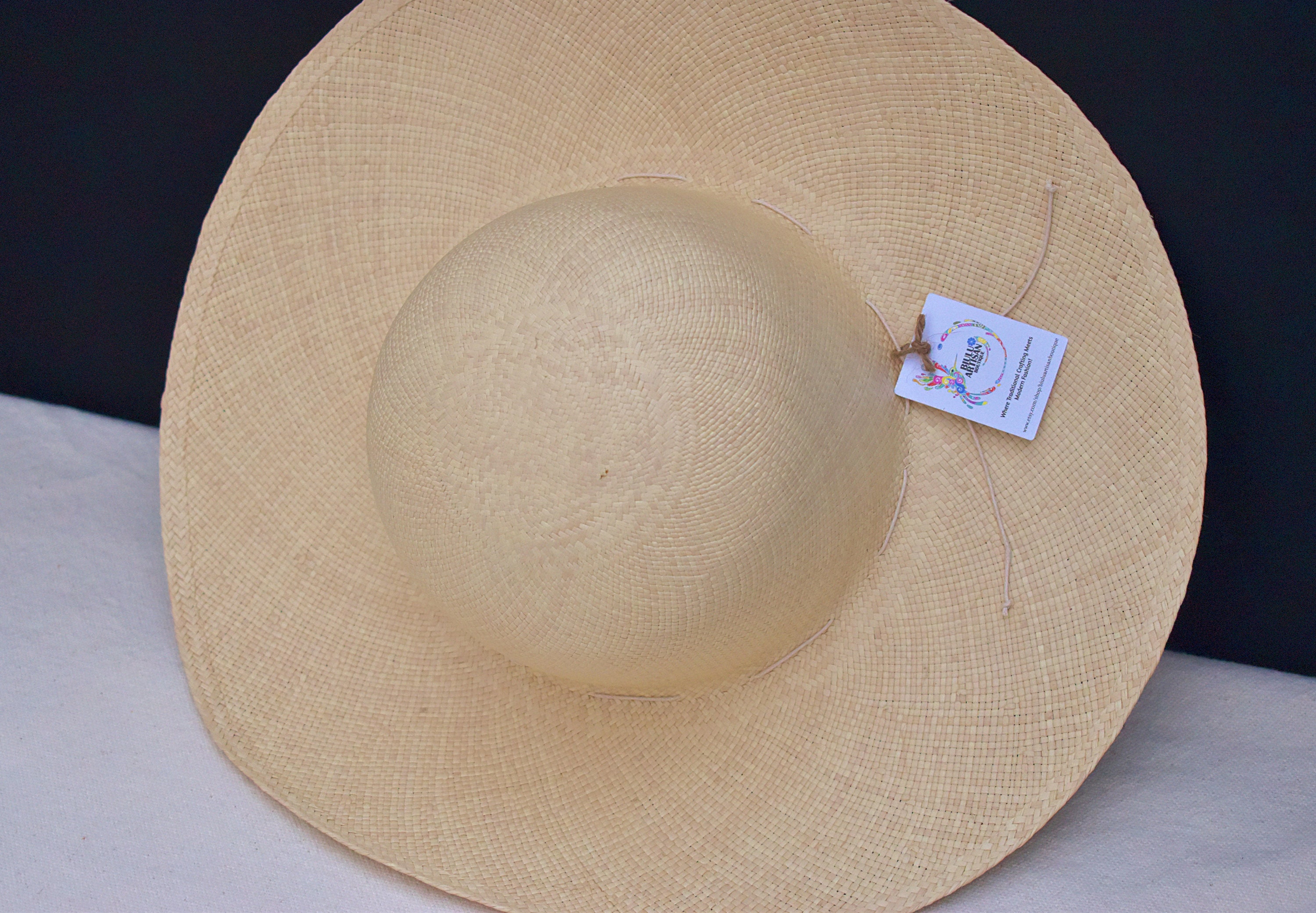 This beautiful women's sombrero-style hat features a hand woven build using naturally collected straw. The brim provides plenty of shade and the design is clean, sleek and feminine.